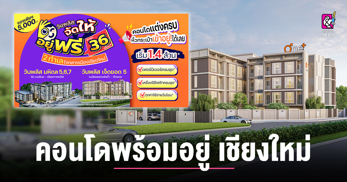 คุ้มสุดๆ กับคอนโดพร้อมอยู่ 2 ทำเลใจกลางเมืองเชียงใหม่ แต่งครบ ส่วนกลางครบครัน เริ่ม 1.4 ล้าน วันพลัสจัดให้! อยู่ฟรีสูงสุด 36 เดือน*2 ทำเลใจกลางเมืองเชียงใหม่ คอนโดแต่งครบ ส่วนกลางครบครัน หิ้วกระเป๋าเข้าอยู่ได้เลย  One Plus Mahidol 5,6,7 1 BED ห้องใหญ่ พื้นที่เยอะ ติดถนนมหิดล ขนาดเริ่มต้น 32 ตร.ม. ฟังก์ชั่นเป็นสัดส่วนในราคาคุ้มค่า | เริ่ม 1.4 ล้าน* และคอนโดใหม่! One Plus Jed Yod 5 1-2 BED หลากหลายฟังก์ชั่น กั้นครัวเป็นสัดส่วน  ทำเลน่าอยู่ เข้า-ออกได้หลายเส้นทาง ใกล้มหาวิทยาลัย | เริ่ม 1.7 ล้าน*  จองวันนี้เพียง 5,000 บาท รับโปรโมชั่นพิเศษ…  อยู่ฟรีสูงสุด 36 เดือน*  ฟรี! เฟอร์นิเจอร์ครบชุด*  ฟรี! […]