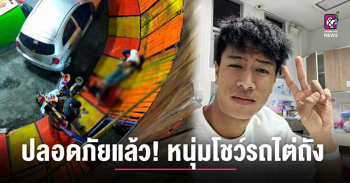 ปลอดภัยแล้ว!! หนุ่มโชว์รถไต่ถัง งานฤดูหนาวเชียงใหม่ หลังจ.ย.ย.คว่ำ