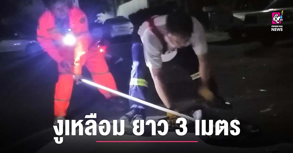 (มีคลิป) กู้ภัยจับงูเหลือม ยาว 3 เมตร หวังจะกินแมวเป็นอาหาร