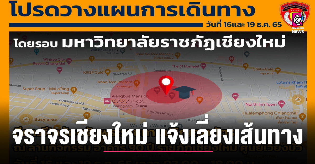 กลุ่มงานจราจรตำรวจภูธร จ.เชียงใหม่ ได้รับแจ้งจากแขวงทางหลวงเชียงใหม่ที่ 2 ในวันที่ 20 – 24 พฤษภาคม 2566 ตั้งแต่เวลา 09.00 น. – 15.30 น. จะทำการปิดจุดกลับรถใต้สะพานหนองหอย (บริเวณหน้าธนาคารกรุงไทย) เพื่อทำการปรับปรุงซ่อมแซมฝาตะแกรงเหล็ก ผู้ที่ใช้เส้นทางเข้าถนนต้นยาง (ไป อ.สารภี)โปรดใช้จุดกลับรถใต้สะพานข้ามแม่น้ำปิง ดังนั้นจึงประชาสัมพันธ์เพื่อเป็นข้อมูล โปรดวางแผนการเดินทางเพื่อความสะดวกในการใช้เส้นทาง