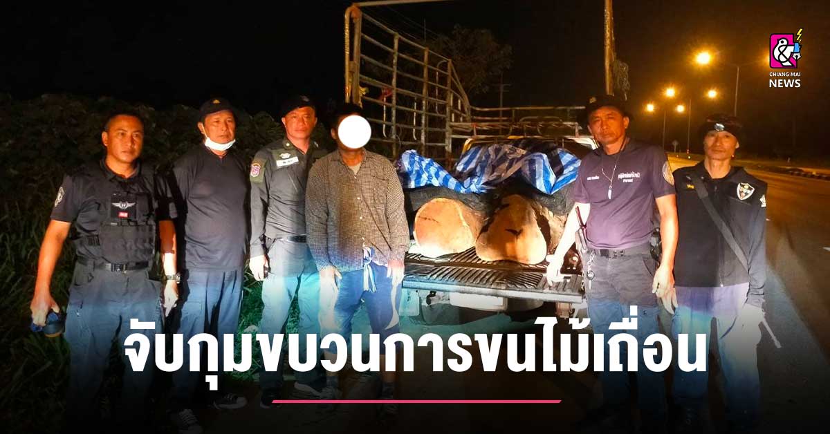 แพร่ จับขบวนไม้เถื่อนส่งขายต่างชาติ ส่วนคนขับหนีไปกับความมืด