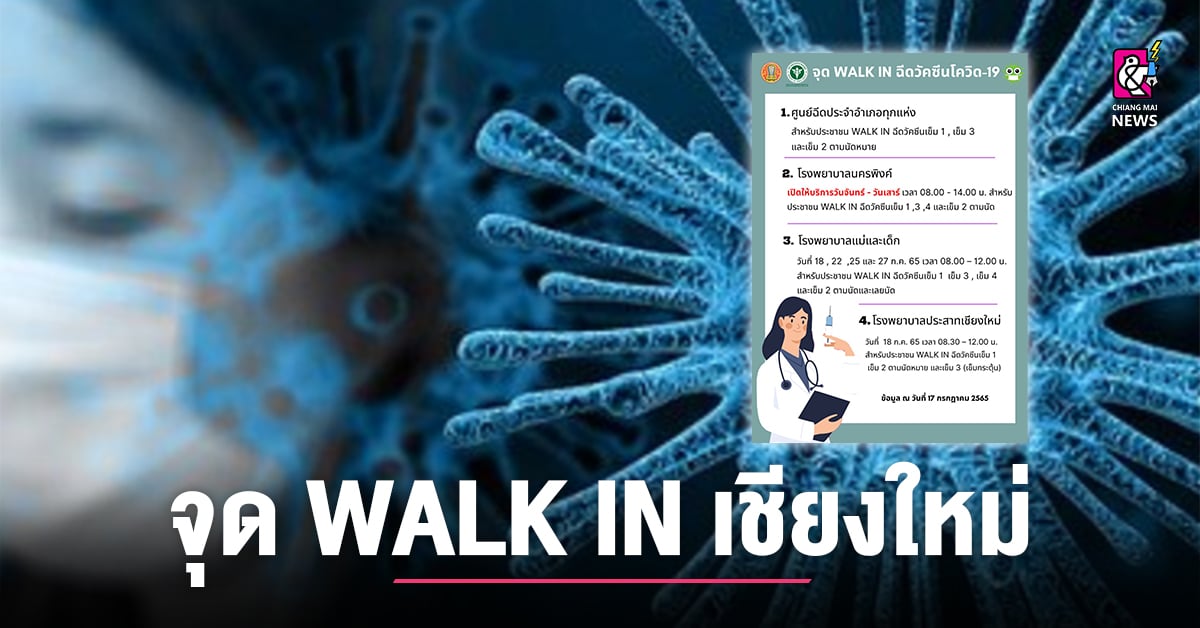 จุด WALK IN ฉีดวัคซีนโควิด-19 เชียงใหม่ (10 ก.ย. 2565)
