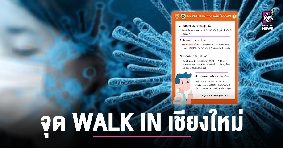 จุด WALK IN ฉีดวัคซีนโควิด-19 เชียงใหม่ (23 ก.ค. 2565)