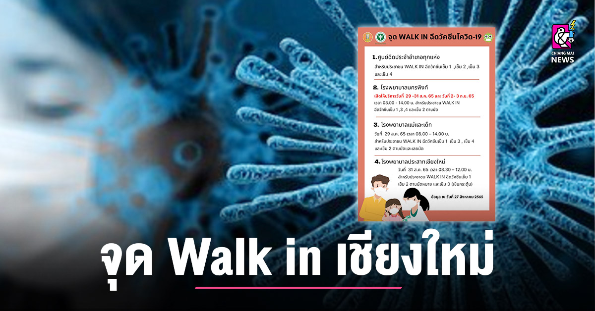 จุด WALK IN ฉีดวัคซีนโควิด-19 เชียงใหม่ (27 ส.ค. 2565)