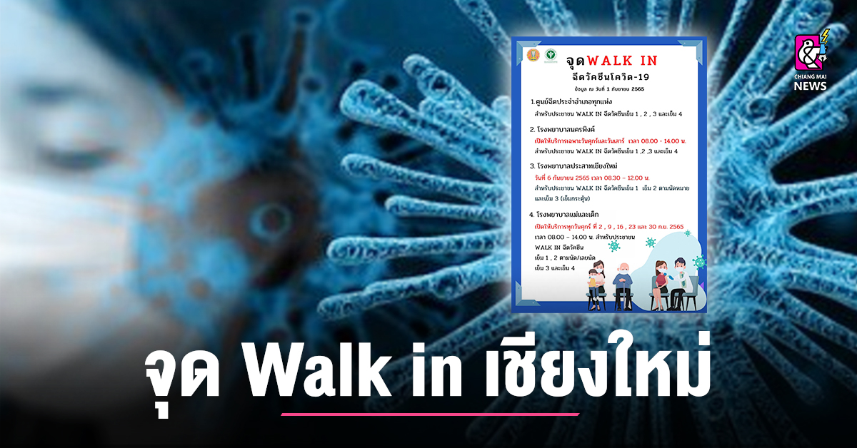จุด WALK IN ฉีดวัคซีนโควิด-19 เชียงใหม่ (1 ก.ย. 2565)
