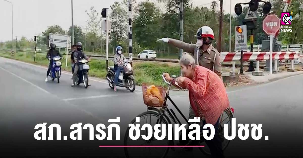 เจ้าหน้าที่ตำรวจ สภ.สารภี จ.เชียงใหม่ อำนวยความสะดวกให้ผู้สูงอายุซึ่งปั่นรถจักรยานจะข้ามถนน บริเวณทางตัดรถไฟ ได้ข้ามถนนโดยปลอดภัย วันที่ 10 เมษายน 2566 เวลา 07.30 น. ส.ต.ท.นครินทร์ เกษรศรี ผบ.หมู่ (ป.) สภ.สารภี จ.เชียงใหม่ ได้อำนวยความสะดวกการจราจร(ช่วงเช้า) บริเวณทางตัดรถไฟเชียงแสนอยู่นั้น ได้มีคุณยายกำลังปั่นรถจักรยานจะข้ามถนน ส.ต.ท.นครินทร์ฯ ได้จึงอำนวยความสะดวกการจราจรให้แก่คุณยายข้ามถนนโดยปลอดภัย