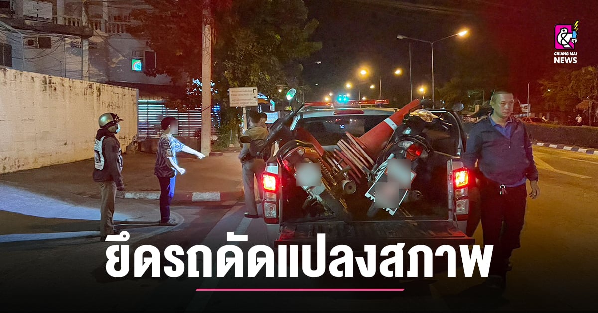 รับแจ้งมีบุคคลรวมกลุ่มน่าสงสัย นอ.สันทราย ตรวจ ยึดรถยนต์ดัดแปลง