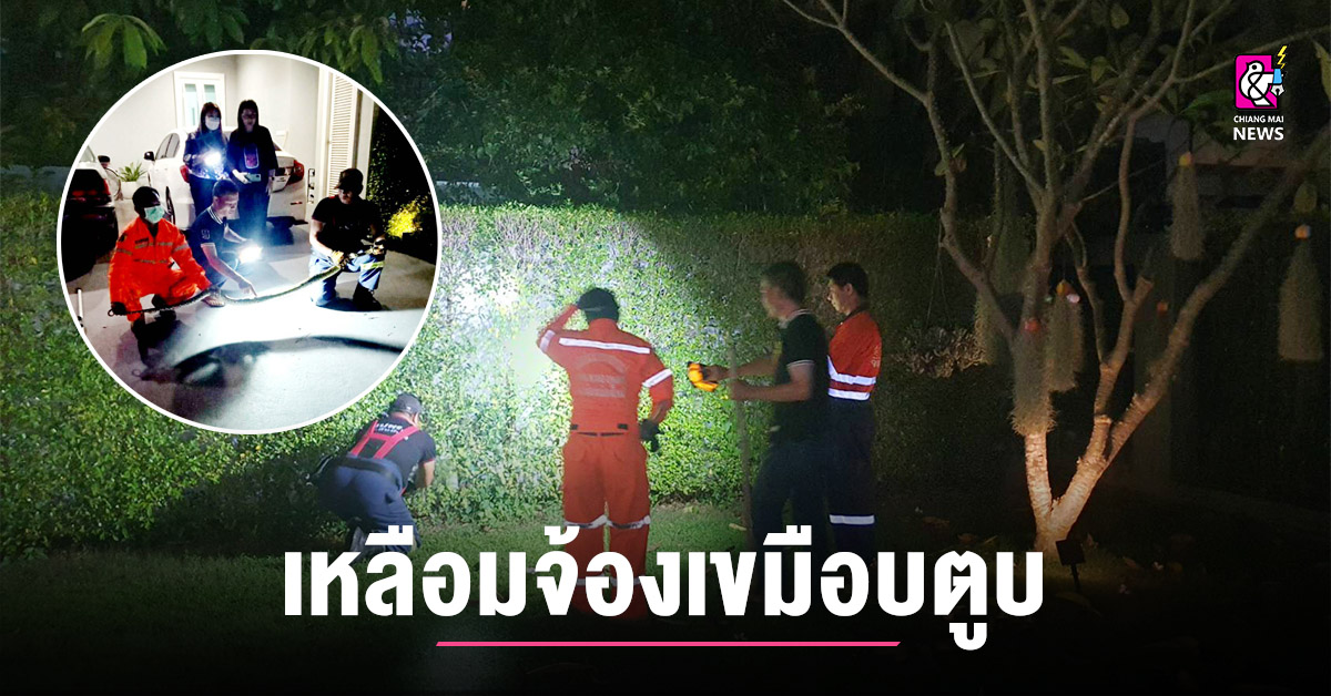 เมื่อเวลา 19.32 น. งานป้องกันฯ ทต.หนองหอย อ.เมือง จ.เชียงใหม่ รับแจ้งจากศูนย์วิทยุกู้ชีพ ทต.หนองหอย ได้รับแจ้งที่ บ้านหมู่ที่ 1 บ้านหนองหอย ของนางดารารัตน์ ไชยาโส พบงูเลื้อยคลานบริเวณด้านหลังพุ่มไม้ด้านกำแพงข้างบ้าน ทางเจ้าหน้าที่ป้องกันฯ ออกตรวจสอบพบเป็นงูเหลือม 3 เมตร หลบอยู่ในพุ่มไม้ข้างกำแพงบ้าน กู้ภัยจึง ดำเนินการจับเป็นที่เรียบร้อย จากการสอบถามเจ้าของบ้านทราบว่าก่อนที่งูจะเข้าบ้านมีเสียงสุนัขเห่าคาดว่างูเหลือมจะมากินสุนัขเป็นอาหารเจ้าของบ้านมาพบก่อนจึงรีบแจ้งกู้ภัยมาจับก่อนที่งูเหลือมจะมาเขมือบสุนัข