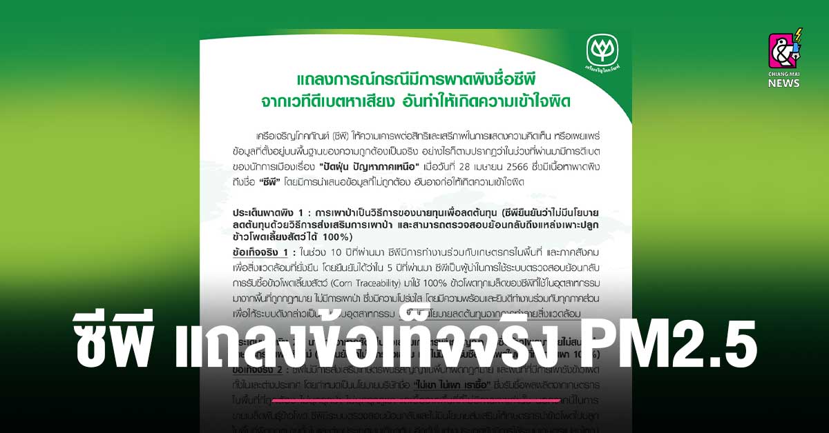 CP แถลงข้อเท็จจริง หลังนักการเมืองพาดพิงในดีเบตเหตุปัญหาฝุ่น
