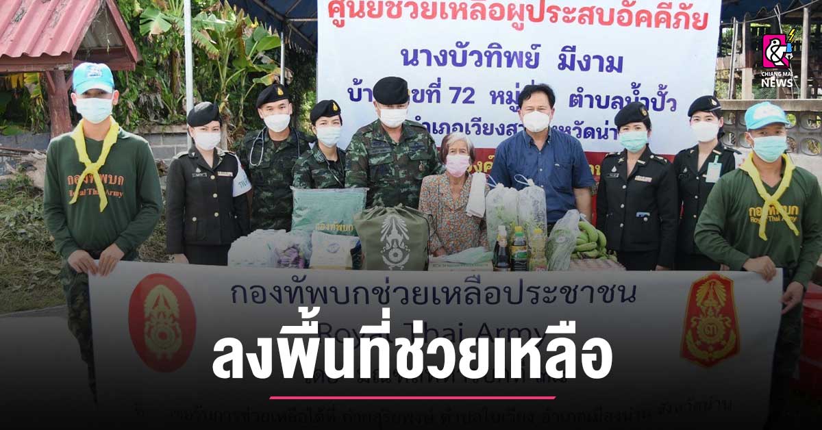 วันที่ 15 กรกฎาคม 2565 พล.ต. คณิศร อาสมะ ผบ.มทบ.38 พร้อมด้วย พ.ท. สรารักษ์ ชูสกุล ผอ.รพ.ค่ายสุริยพงษ์ ลงพื้นที่มอบเครื่องอุปโภค บริโภค ถุงยังชีพ ข้าวสารอาหารแห้ง เมล็ดพันธุ์ผัก จากโครงการทหารพันธุ์ดีน่าน เจลแอลกอฮอล์ล้างมือ หน้ากากอนามัย และกล่องยาเวชภัณฑ์ ให้กับ นายบุญศรี เขื่อนเมือง อายุ 72 ปี เนื่องจากได้รับแจ้งจากผู้อำนวยการโรงเรียนบ้านบ่อหลวง ซึ่งเป็นโรงเรียนในโครงการทหารพันธุ์ดี “ชุมชนเบิกบาน อาหารปลอดภัย” ตามแนวพระราชดำริของสมเด็จพระกนิษฐาธิราชเจ้า กรมสมเด็จพระเทพรัตนราชสุดาฯ สยามบรมราชกุมารี คือ นายบุญศรีฯ อาศัยอยู่ตามลำพัง ณ บ้านเลขที่ 153 ม.1 บ้านม่อน ต.บ่อเกลือใต้ อ.บ่อเกลือ จ.น่าน เพื่อช่วยเหลือประชาชนให้มีความสุขเกิดความซาบซึ้งใจที่ได้รับการช่วยเหลือครั้งนี้
