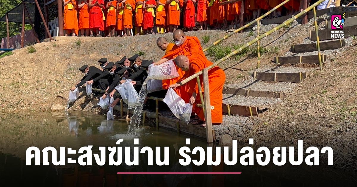 (มีคลิป) คณะสงฆ์น่าน ร่วมปล่อยปลาถวายพระราชทานกุศล