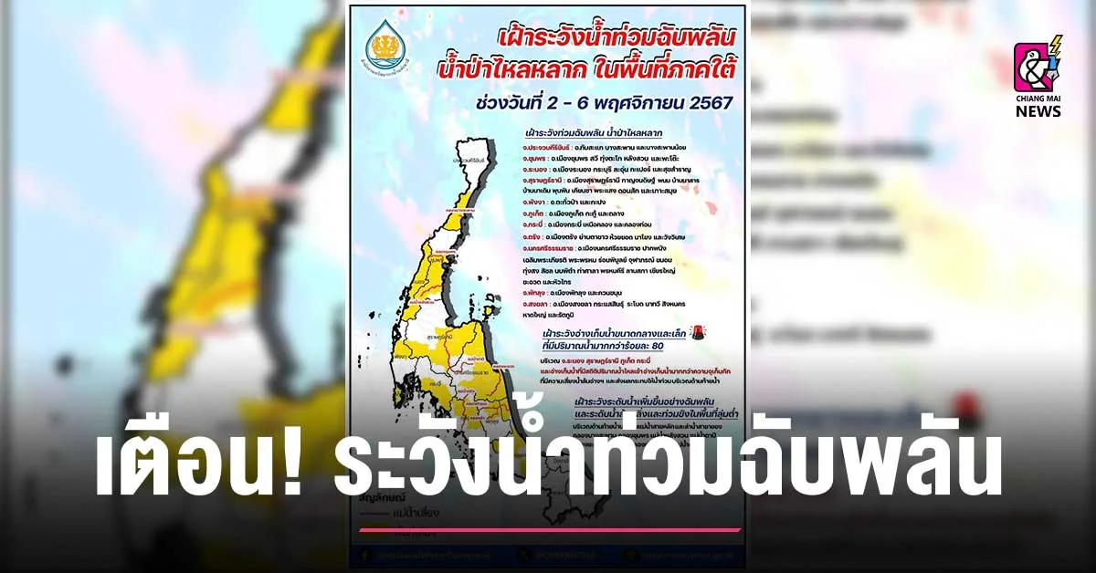 กอปภ.จ.ชร. แจ้งเตือนทุกอำเภอเฝ้าระวัง น้ำท่วมฉับพลัน น้ำป่าไหลหลาก ดินโคลนถล่ม