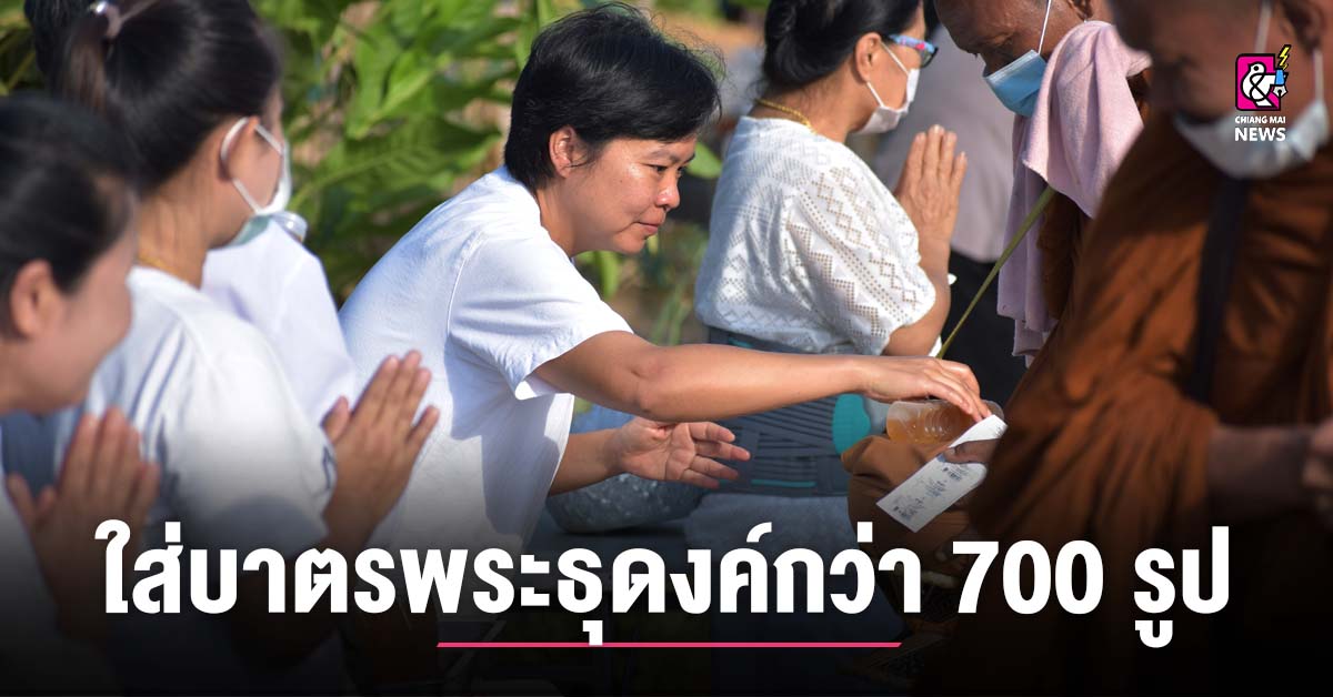 ชาวพุทธเชียงคำใส่บาตรพระธุดงค์กว่า 700 รูป