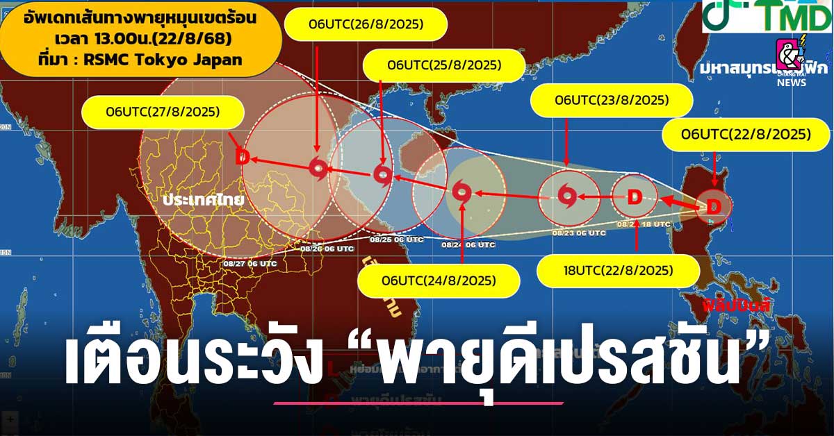 กรมอุตุนิยมวิทยา ประกาศฉบับที่ 1 เมื่อเวลา 16.00 น. ของวันนี้ (22 ส.ค. 68) พายุดีเปรสชันบริเวณเกาะลูซอน ประเทศฟิลิปปินส์ มีศูนย์กลางอยู่ที่ละติจูด 17.0 องศาเหนือ ลองจิจูด 121.0 องศาตะวันออก ความเร็วลมสูงสุดใกล้ศูนย์กลางประมาณ 55 กิโลเมตรต่อชั่วโมง พายุนี้กำลังเคลื่อนตัวทางทิศตะวันตกค่อนทางเหนือเล็กน้อย ด้วยความเร็วประมาณ 20 กิโลเมตรต่อชั่วโมง คาดว่าจะเคลื่อนลงสู่ทะเลจีนใต้ตอนบนในวันพรุ่งนี้ (23 ส.ค. 68) มีแนวโน้มจะทวีกำลังแรงขึ้นเป็นพายุโซนร้อน และจะเคลื่อนขึ้นฝั่งบริเวณประเทศเวียดนามและประเทศลาวตอนบน ในช่วงวันที่ 25–26 ส.ค. 68 ประกอบกับมรสุมตะวันตกเฉียงใต้ที่พัดปกคลุม ทะเลอันดามัน ประเทศไทย และอ่าวไทยจะมีกำลังแรงขึ้น จากอิทธิพลดังกล่าว ทำให้ในช่วงวันที่ 24–27 ส.ค. 68 ประเทศไทยจะมีฝนเพิ่มมากขึ้น และมีฝนตกหนักถึงหนักมากหลายพื้นที่ กับมีลมแรงบริเวณภาคตะวันออกเฉียงเหนือตอนบน ภาคเหนือ ภาคกลาง ภาคตะวันออก และภาคใต้ฝั่งตะวันตก รวมทั้งกรุงเทพมหานครและปริมณฑล ขอให้ประชาชนในบริเวณดังกล่าวระวังอันตรายจากฝนตกหนักถึงหนักมากและฝนที่ตกสะสม ซึ่งอาจทำให้เกิดน้ำท่วมฉับพลัน และน้ำป่าไหลหลาก […]