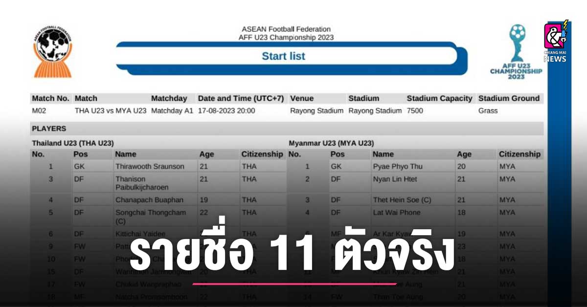 รายชื่อ 11 ตัวจริง ไทยU23 🇹🇭 พบ เมียนมา 🇲🇲 เกมแรก