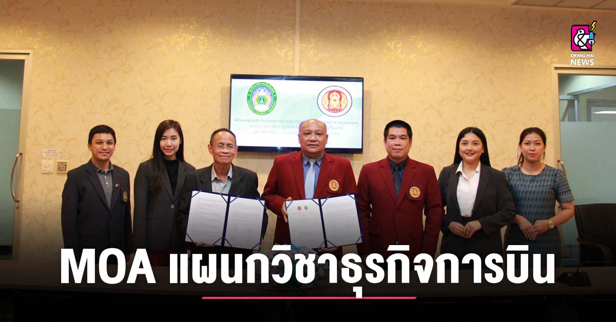 วันที่ 25 พฤศจิกายน 2565 นายวัชรพงศ์ ฝั้นติ๊บ ผู้อำนวยการ วิทยาลัยเทคนิคเชียงใหม่ มอบหมายให้ นาย ชรันต์ยุทธ์ บุญยง รองผู้อำนวยการฝ่ายวิชาการ พร้อม น.ส.ชนนิกานต์ จริตงาม ครูแผนกวิชาธุรกิจการบิน น.ส.ศศิมา เรืองสมบัติ หัวหน้าแผนกวิชาธุรกิจการบิน และโลจิสติกส์ เข้าร่วมลงนามการทำสัญญาข้อตกลง MOA (บันทึกข้อตกลงความร่วมมือ ) ระหว่าง แผนกวิชาธุรกิจการบิน วิทยาลัยเทคนิคเชียงใหม่ กับ สาขาวิชาการจัดการธุรกิจการบิน (หลักสูตรนานาชาติ) วิทยาลัยนานาชาติ มหาวิทยาลัยราชภัฏเชียงใหม่ มีวัตถุประสงค์เพื่อทำความร่วมมือในหัวข้อหลักสูตรเชื่อมโยง โดยให้นักศึกษาที่จบการศึกษาในระดับชั้นปวส. จากแผนกวิชาธุรกิจการบิน วิทยาลัยเทคนิคเชียงใหม่ สามารถเข้าศึกษาต่อและเทียบโอนหน่วยกิตในระดับปริญญาตรีในสาขาการจัดการธุรกิจการบิน วิทยาลัยนานาชาติ มหาวิทยาลัยราชภัฏเชียงใหม่ได้ครบตามหลักสูตรที่กำหนดไว้ ณ วิทยาลัยนานาชาติ มหาวิทยาลัยราชภัฏเชียงใหม่