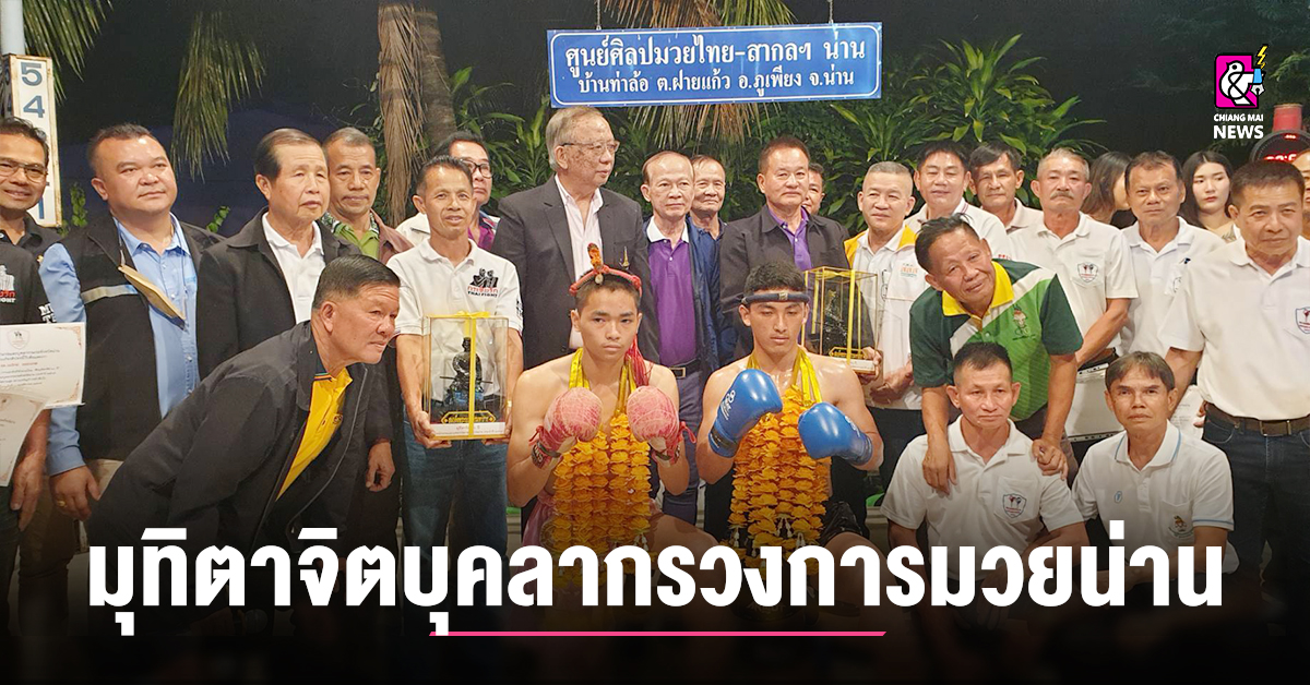 น่าน จัดโครงการจัดงานมุทิตาจิตอดีตนักมวยและบุคลากรวงการมวยจังหวัดน่าน เมี่อวันที่ 5 พฤศจิกายน 2565 เวลา 19.30 น. ที่สนามมวย บ้านท่าล้อ ตำบลฝายแก้ว อำเภอภูเพียง จังหวัดน่าน พลเอกจงศักดิ์ พานิชกุล ประธานที่ปรึกษาสมาคมสื่อมวลชนจังหวัดน่าน เป็นประธานเปิดการแข่งขันชกมวย โครงการจัดงานมุทิตาจิตนักมวยและบุคลากรองค์การมวยจังหวัดน่าน ด้วยคณะกรรมการชมรมมวย อดีตนักมวยและบุคลากรวงการมวยจังหวัดน่านได้จัดตั้งชมรม มีนายเดชา พลสันติกุล เป็นประธานชมรม และนายประพันธ์ ทะจาย เป็นกรรมการและเรขานุการชมรมฯ เพื่อให้การช่วยเหลือ สนับสนุนกิจกรรมของชมรมฯ และได้กำหนดระเบียบข้อบังคับของชมรมอดีตนักมวยและบุคลากรวงการมวยจังหวัดน่าน ตั้งแต่วันที่ 4 มิถุนายน 2559 และเพื่อสนับสนุนกิจกรรมตามระเบียบข้อบังคับคณะกรรมการชมรมฯ ได้ต่ำเนินการตามโครงการจัดงานมุทิตาจิตอดีตนักมวยและบุคลากรวงการมวยจังหวัดน่าน ที่มีอายุครบ 60ปี เป็นประจำทุกปี วัตถุประสงค์ เพื่อรำลึกถึงคุณงามความดีของอศีตนักมวยและบุดลากววงการมวยที่จะมีอายุครบ 60 ปี สร้างความสัมพันธ์อันดีระหว่างสมาชิกอดีตนักมวยและบุคลากรวงการมวยช่วยเหลือสมาชิกชมรม ส่งเสริมแลสนับสนุนกิจกรรมของชมรมฯ และส่งเสริมและนับสมุนกีฬามวยไทย-มวยสากลจังหวัดน่าน