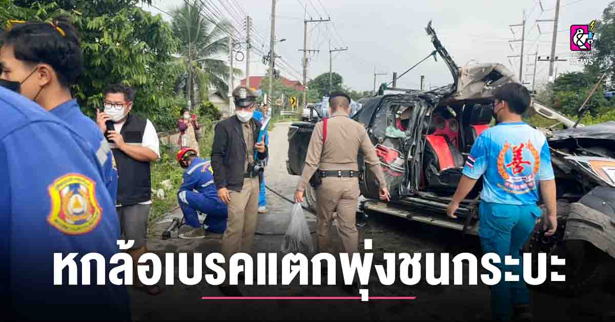 (มีคลิป) รถหกล้อเบรคแตก ทะลุเกาะกลาง ชนกระบะ บาดเจ็บ 2 ราย