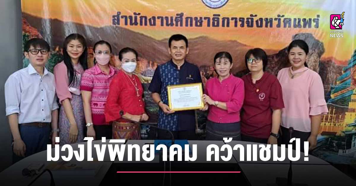 เมื่อวันที่ 27 กันายน 2565 นายอดุล เทพกอม ศึกษาธิการจังหวัดแพร่ มอบเกียรติบัตรให้กับสถานศึกษา กิจกรรมการคัดเลือกวิธีปฏิบัติที่ดีของสถานศึกษาในการจัดทำโครงการสร้างและส่งเสริมความเป็นพลเมืองดีตามรอยพระยุคลบาท ด้านการศึกษาสู่การปฏิบัติ ประจำปีงบประมาณ พ.ศ.2565 ณ ห้องประชุมสำนักงานศึกษาธิการจังหวัดแพร่ โดยมีสถานศึกษาที่ได้รับรางวัล ดังนี้ รางวัลชนะเลิศ โรงเรียนม่วงไข่พิทยาคม สังกัด สพม.แพร่ รางวัลรองชนะเลิศอันดับ 1 โรงเรียนบ้านห้วยโรงนอก สังกัด สพป.แพร่ เขต 1 รางวัลรองชนะเลิศอันดับ 2 โรงเรียนสาธิตเทศบาลบ้านเชตวัน สังกัดกองการศึกษาเทศบาลเมืองแพร่