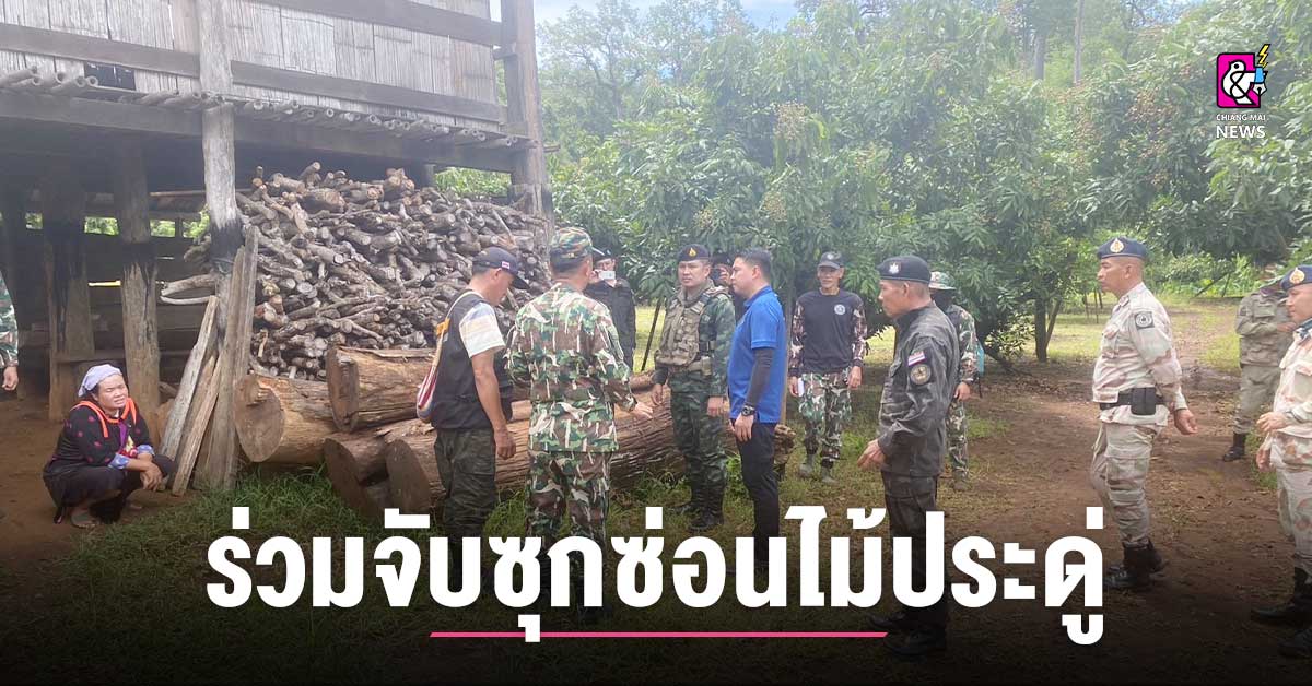 อช.ศรีลานนา ร่วมจับผู้ต้องหา ซุกซ่อนไม้ประดู่