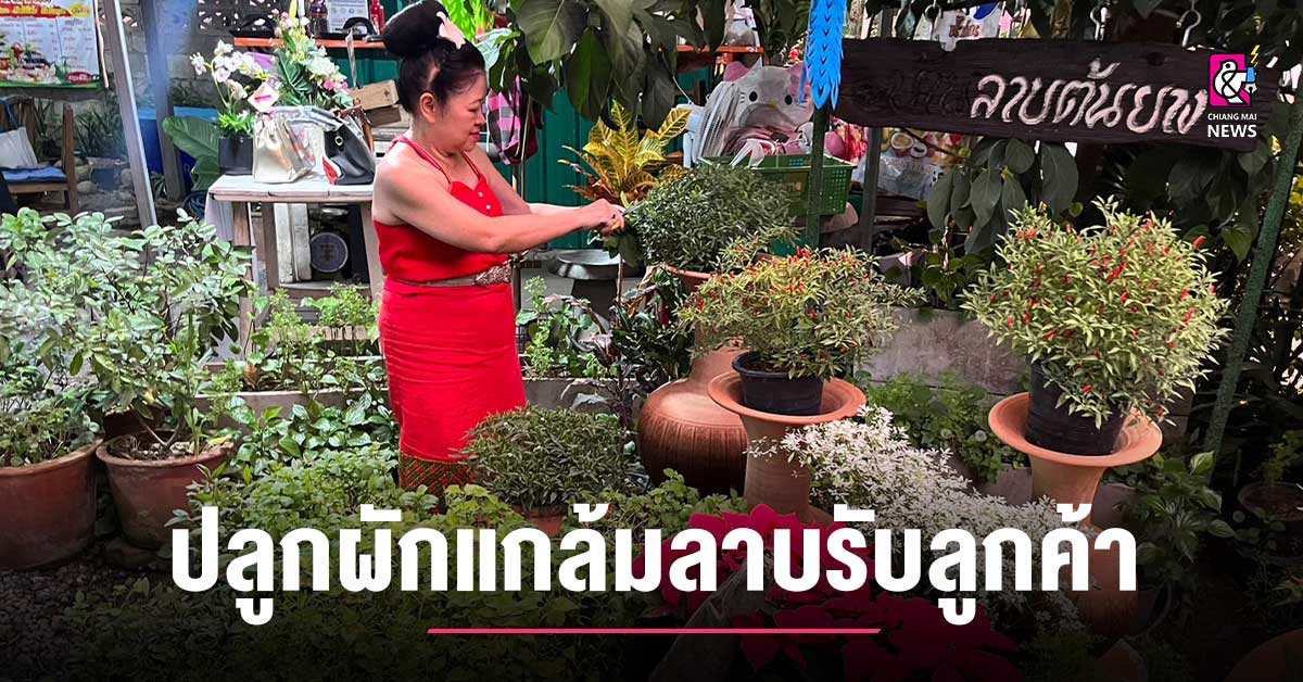 ร้านลาบต้นยาง ปลูกผักแกล้มลาบให้ลูกค้า