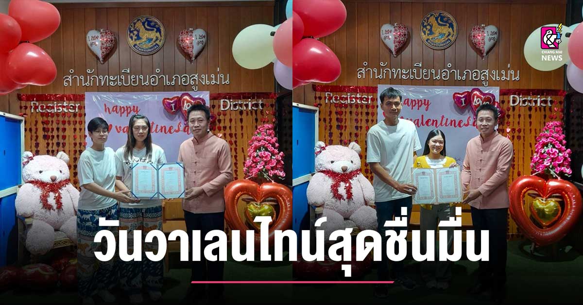 คู่สมรสชื่นมื่น! ใน “วันวาเลนไทน์” อำเภอสูงเม่น จดทะเบียนสมรสให้ 19 คู่