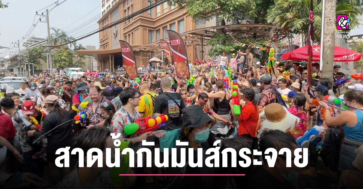 นักท่องเที่ยวจัดเต็ม สงกรานต์เชียงใหม่ สาดน้ำกันเมามันส์ เต้นกันกระจาย ไม่หวั่นอากาศร้อน ด้านท่าแพวันนี้คึกคักทั้งวัน บรรยากาศเทศกาลสงกรานต์ ที่บริเวณถนนสานประตูท่าแพเชียงใหม่ เป็นไปอย่างคึกคักตั้งแต่ช่วงเช้าที่ผ่านมา ที่มีทั้งประชาชนและนักท่องเที่ยวชาวไทย ต่างชาติ ออกมาพร้อมใจกันเล่นสาดน้ำกันอย่างสนุกสนาน ไม่หวั่นสภาพอากาศร้อนจัด และจนในขณะนี้บรรยากาศที่บริเวณจุดนี้ยังคงคึกคักมากขึ้น เนื่องจากประชาชนและนักท่องเที่ยวทั่วทุกสารทิศต่างเกินทางเข้ามาเล่นน้ำกันที่จุดนี้ ขณะที่หลายจุดมีการเปิดเพลงเล่นน้ำกันอย่างครึกครื้น ส่งผลทำให้นักท่องเที่ยวต่างชาติ พากันอดใจไม่ไหวเข้ามาร่วมเล่นสาดน้ำ และเต้นโชว์สเต็บกันจนเต็มถนน ส่งผลทำให้ในขณะนี้ที่บริเวณถนนเส้นนี้รถยนต์ไม่สามารถสัญจรได้แล้ว และทางประชาชน รวมทั้งนักท่องเที่ยว ยังคงปักหลักเล่นน้ำกันอย่างต่อเนื่อง ซึ่งคาดว่าบรรยากาศจะยังคงคึกคักไปจนถึงช่วงเย็น