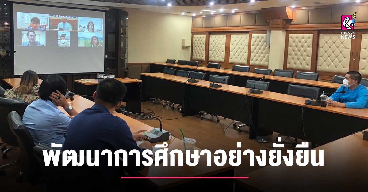 วิทยาลัยเทคนิคเชียงใหม่ร่วมประชุมเกี่ยวกับการพัฒนาการศึกษาอย่างยั่งยืน วันที่ 5 กรกฎาคม 2565 นายวัชรพงศ์ ฝั้นติ๊บ ผู้อำนวยการวิทยาลัยเทคนิคเชียงใหม่ รักษาราชการแทนผู้อำนวยการสถาบันการอาชีวศึกษาภาคเหนือ 1 พร้อมด้วย นายบุญรัตน์ สว่างแจ้ง รองผู้อำนวยการฝ่ายพัฒนากิจการนักเรียน นักศึกษา นายธีรวุธ ยะอูป รองผู้อำนวยการ ฝ่ายบริหารทรัพยากร นายชรันต์ยุทธ์ บุญยง รองผู้อำนวยการ ฝ่ายวิชาการ และนางสาวปรียานุช คำเย็น หัวหน้างานแนะแนวอาชีพและจัดหางาน เข้าร่วมประชุมออนไลน์ผ่านโปรแกรม ZOOM กับผู้บริหารกลุ่มเซ็นทรัล นำโดยคุณวิทยา ศรีสุวรรณ ผู้ช่วยกรรมการผู้จัดการใหญ่ กลุ่มเซ็นทรัล คุณสุธาสินี ศุภศิริสินธุ์ ผู้อำนวยการฝ่ายพัฒนาการศึกษาอย่างยั่งยืน กลุ่มเซ็นทรัล เกี่ยวกับการพัฒนาการศึกษาอย่างยั่งยืน อย่างต่อเนื่อง ผ่านโครงการ “เซ็นทรัล ทำ” ณ ห้องประชุมสุทธาสิริ วิทยาลัยเทคนิคเชียงใหม่