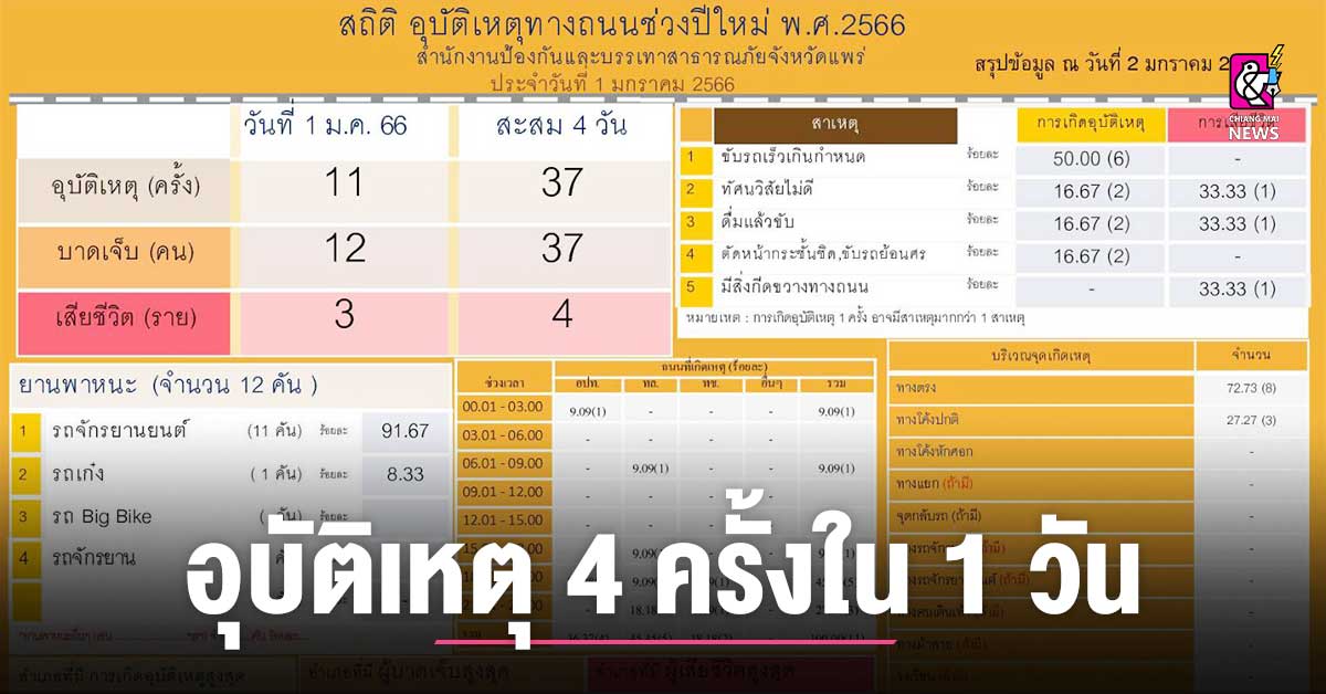 แพร่ สรุปผลวันที่ 1 ม.ค. 65 เกิดอุบัติเหตุ 4 ครั้ง