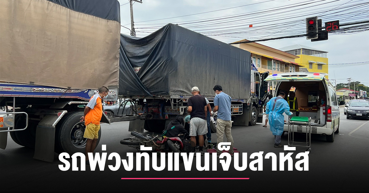 (มีคลิป) พ่อเฒ่าขี่ จยย. มุดรถพ่วง แขนถูกทับเจ็บสาหัส