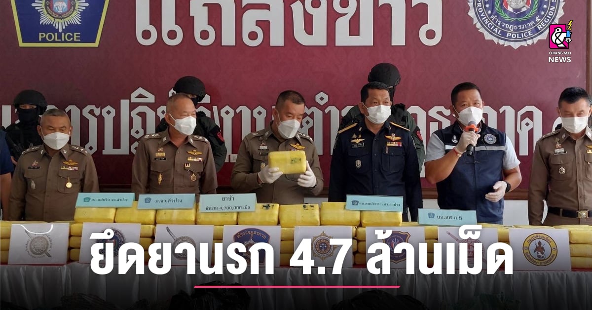 รวบ 4 หนุ่ม หวังรวยทางลัดขนยานรก ฝ่าด่านชะตาไม่เป็นใจโดน เจ้าหน้าที่สกัดยึดยานรก 4.7 ล้านเม็ด เมื่อเวลา 11.00 น. วันนี้ (10 ก.ค. 65) ที่ตำรวจภูธรภาค 5 พล.ต.ท.ปิยะ ต๊ะวิชัย ผบช.ภ.5 พร้อมด้วยเจ้าหน้าที่เกี่ยวข้อง ได้ร่วมกันแถลงผลการจับกุมยาเสพติดรายสำคัญ ยาบ้า จำนวน 4.7 ล้านเม็ด ผู้ต้องหา 4 คน รถยนต์ 2 คัน ที่ทางเจ้าหน้าที่สามารถสกัดจับได้เมื่อ วันที่ 6 ก.ค. ที่ผ่านมา ขณะลำเลียงยาเสพติดทั้งหมดผ่านบริเวณถนนเถิน-แม่พริก (สายเก่า) ต.แม่พริก อ.แม่พริก จว.ลำปาง โดยทาง ผบช.ภ.5 เปิดเผยว่า ทางเจ้าหน้าที่ตำรวจได้สืบทราบเบาะแสว่า จะมีกระบวนการลักลอบลำเลียงยาบ้าจากแนวชายแดนเข้าสู่พื้นที่ตอนในของประเทศและจะใช้ถนนเส้นทางรองในการลักลอบลำเลียง เจ้าหน้าที่ตำรวจประจำด่านแม่พริกของ สภ.แม่พริก จึงได้ไปตั้งจุดตรวจพื้นที่สกัดกั้นการลักลอบดังกล่าวจนกระทั่งตามวันเวลาเกิดเหตุได้มีรถยนต์เก๋งป้ายทะเบียนเชียงใหม่ขับผ่านเข้ามาเจ้าหน้าที่จึงได้ส่งสัญญาณให้หยุดรถปรากฏว่ารถคันดังกล่าวกลับเร่งเครื่องฝ่าจุดตรวจแต่ไปชนเข้ากับรถยนต์ของเจ้าหน้าที่ทำให้รถเก๋งพลิกคว่ำ และเจ้าหน้าที่สามารถควบคุมตัวผู้ขับขี่และผู้โดยสาร ได้จำนวน 2 คน จากการตรวจค้นในรถพบยาบ้าจำนวน […]
