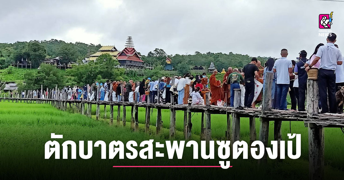 ชาวแม่ฮ่องสอนและนักท่องเที่ยว พากันร่วมทำบุญตักบาตร ที่สะพานซูตองเป้ สะพานแหล่งท่องเที่ยวชื่อดัง ในวันเข้าพรรษาท่ามกลางสายฝนที่โปรายปรายมาชุ่มฉ่ำให้แก่ทุกคน เมื่อเวลา 07.30 น. วันที่ 21 กรกฎาคม 2567 พระปลัดจิตพัฒน์ อัคคปัญโญ เจ้าอาวาสวัดภูสมะณาราม บ้านกุงไม้สัก ต.ปางหมู อ.เมือง จ.แม่ฮ่องสอน จัดให้มีพิธีทำบุญตักบาตรเนื่องในวันเข้าพรรษาขึ้นที่สะพานซูตองเป้ หรือสะพานบุญอธิฐานแห่งความสำเร็จ โดยมีพุทธศาสนิกชนชาวแม่ฮ่องสอนและนักท่องเที่ยว เดินฝ่าสายฝนที่ตกลงมาโปรยปรายไปร่วมทำบุญตักบาตรข้าวสาร อาหารแห้ง พระภิกษุสงฆ์-สามเณรจำนวน 65 รูป ที่รับบิณฑบาต บนสะพานซูตองเป้ หรือสะพานบุญอธิฐานแห่งความสำเร็จ ท่ามกลางสายฝนที่ตกลงมาประปราย แต่ผู้มีจิตศรัทธาก็ไม่ย่อท้อพากันมายืนกางร่มรอ เพื่อร่วมทำบุญตักบาตรบนสะพานซูตองเป้ที่ทอดข้ามทุ่งนาตลอดความยาวของสะพานประมาณ 600 เมตร กันอย่างเนืองแน่น อย่างไรก็ตามถึงแม้ปีนี้ผู้คนจะยังคงมาร่วมทำบุญตักบาตรวันเข้าพรรษาที่สะพานซูตองเป้กันเป็นจำนวนมาก แต่เมื่อเทียบกับทุกปีก็ถือว่าลดลงไปพอสมควร ส่วนหนึ่งอาจเป็นเพราะปัญหาด้านเศรษฐกิจที่ซบเซา และนักท่องเที่ยวที่เดินทางลงไปท่องเที่ยวแม่ฮ่องสอนช่วงนี้ยังมีน้อย ตลอดจนสภาพฝนฟ้าอากาศที่ไม่เป็นใจ จึงทำให้ผู้มาร่วมทำบุญตักบาตรที่สะพานซูตองเป้ในวันเข้าพรรษาปีนี้ลดลงกว่าปีที่ผ่านมา สำหรับวัดภูสมะณาราม บ้านกุงไม้สัก ต.ปางหมู อ.เมือง จ.แม่ฮ่องสอน และสะพานซูตองเป้ ปัจจุบันถือว่าเป็นแหล่งท่องเที่ยวที่สำคัญอีกแห่งหนึ่งของจังหวัดแม่ฮ่องสอน ที่ได้รับความนิยมจากนักท่องเที่ยวเดินทางไปสัมผัสความสวยงามทางธรรมชาติและชมวิวทิวทัศน์ที่แตกต่างกันไปในแต่ฤดูกาล ตลอดจนผู้คนพากันไปยืนอธิฐานบนสะพานเพื่อให้ประสบความสำเร็จในสิ่งที่พึงปราถนาตามความเชื่อของแต่ละคน