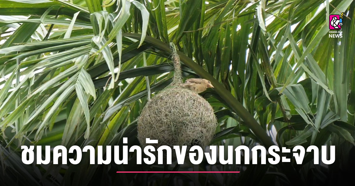 ผู้สื่อข่าว พามาชมคงามน่ารักของ “นกกระจาบธรรมดา” นับร้อยตัวพากันจับจองพื้นที่ สร้างรังบนต้นหมากริมท้องนาในตำบลอินทขิล อ.แม่แตง จ.เชียงใหม่ โดยฝูงนกตัวผู้ได้ลงแรงสร้างรังบนต้นหมากต้นหนึ่งหลายสิบรัง เรียงรายกันจำนวน 6 ต้น อยู่รวมแล้วกันนับร้อยรังจนดูเหมือนคอนโดมีเนียมของนกกระจาบธรรมดา สร้างความตื่นตาตื่นใจให้กับชาวบ้านและนักท่องเที่ยวที่ได้ไปเห็น โดยชาวบ้านแถวนี้บอกว่าไม่บ่อยนักที่จะเห็นนกกระจาบธรรมดามาสร้างรังในต้นเดียวกันได้มากขนาดนี้ เจ้าของร้านอาหารริมทุ่งนา บอกว่า ช่วงต้นเดือนมิถุนายนทุกปีเป็นฤดูสมพันธ์ของนกกระจาบธรรมดา ปกติจะมีมาทำรังอยู่บ้าง แต่ไม่มากขนาดนี้ คาดว่าอาจเป็นเพราะธรรมชาติสมบูรณ์ ไม่มีความแห้งแล้งในช่วงเดือนเมษายนที่ผ่านมา ให้ฝูงนกมาทำรังขยายพันธ์กันมากในปีนี้ ซึ่งชาวบ้านแถวนี้ต่างช่วยกันดูแลอนุรักษ์ ไม่ให้ใครมาทำร้ายหรือจับมันไป รังนกที่มีอยู่เป็นจำนวนมาก มีบางส่วนที่ถูกแรงลมพัดตกลงมา ตนเองก็จะเก็บไว้ตกแต่งร้าน บางส่วนจะให้กับลูกค้าที่ชื่นชอบนำไปตกแต่งบ้านด้วย แม้ว่าบางรังจะมีสภาพสมบูรณ์และมีราคา แต่ทางร้านก็มอบให้กับนักท่องเที่ยวฟรี ๆ สำหรับนกกระจาบธรรมดาเป็นสัตว์ป่าคุ้มครองตามพระราชบัญญัติสงวนและคุ้มครองสัตว์ป่าพุทธศักราช 2535 มี มีปากแข็งหนารูปกรวย หางสี่เหลี่ยมสั้น เมื่อเข้าสู่ฤดูผสมพันธุ์และการทำรัง หน้าผากของนกตัวผู้จะเปลี่ยนจากสีน้ำตาลเป็นสีเหลืองสดเพื่อดึงดูดความสนใจของนกตัวเมีย นอกจากนี้นกกระจาบธรรมดายังถูกนกให้เป็นสถาปนิกตัวน้อย เพราะนกตัวผู้หนึ่งตัว ต้องใช้เวลาบินไปคาบเส้นใบมะพร้าว ใบหญ้า มาสร้างรังกว่า 500 เที่ยว แต่และเส้นถูกสานเข้ากันอย่างพิถีพิถัน จนกลายเป็นรังรูปร่างคล้ายน้ำเต้า เชิญชวนให้นกตัวเมียมาเลือกอยู่และผสมพันธ์ุ
