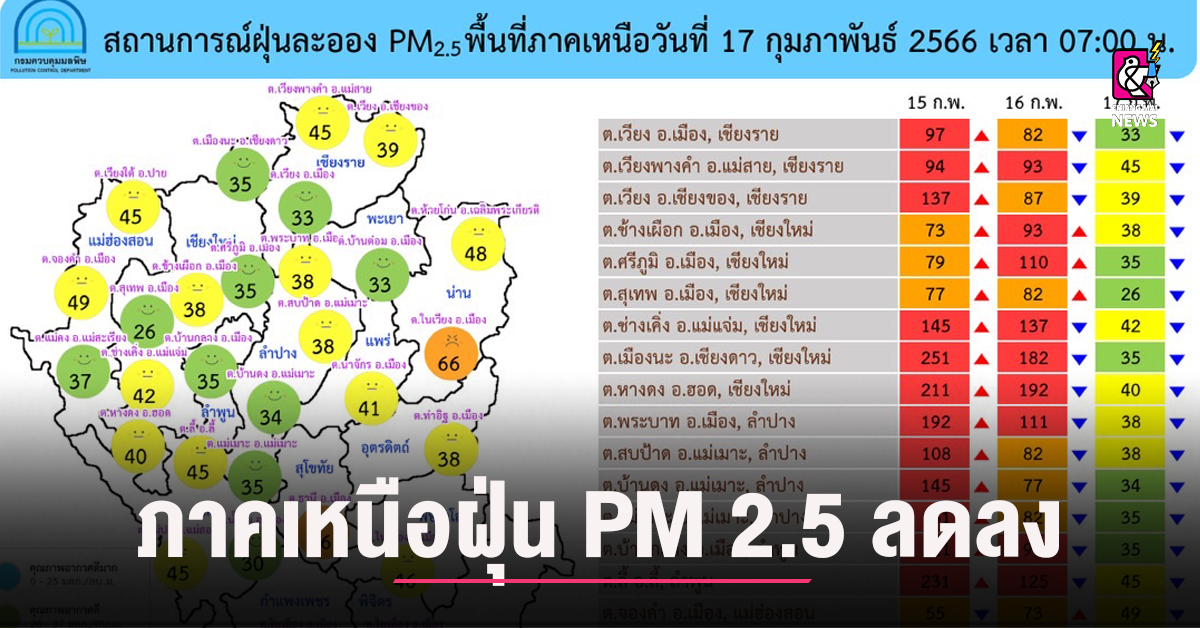 ภาคเหนือฝุ่น PM 2.5 ลดลง