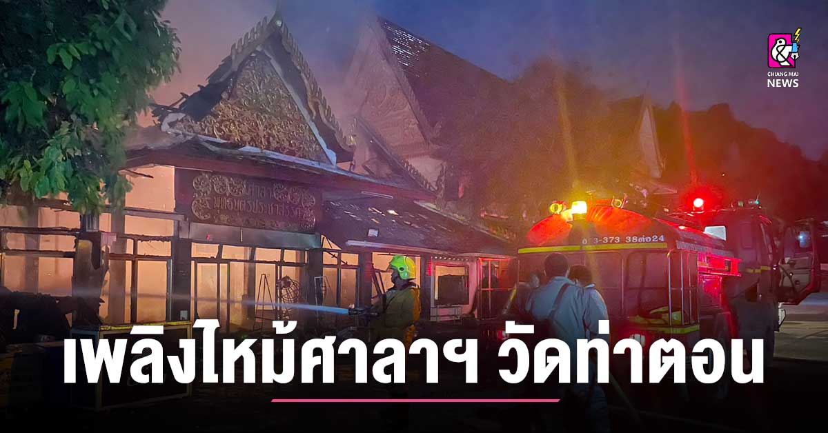 เพลิงไหม้ศาลาฯ วัดท่าตอน อ.แม่อาย ควบคุมเพลิงกว่า 2 ชั่วโมง
