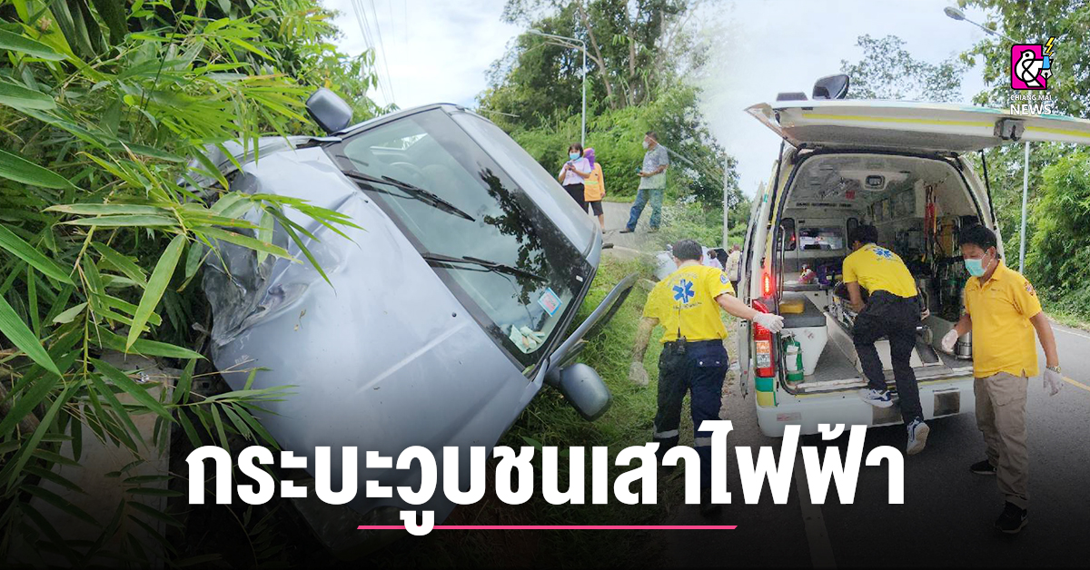 (มีคลิป) ผู้เฒ่า 68 วูบชนเสาไฟฟ้า ติดภายในรถ จนท.เร่งช่วยเหลือ