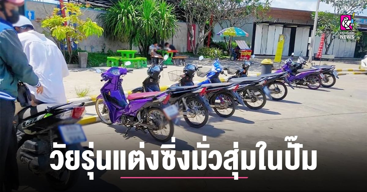 ฝากถึงตำรวจดอยหล่อ กลุ่มวัยรุ่น จยย.แต่งซิ่งมั่วสุ่มในปั้ม