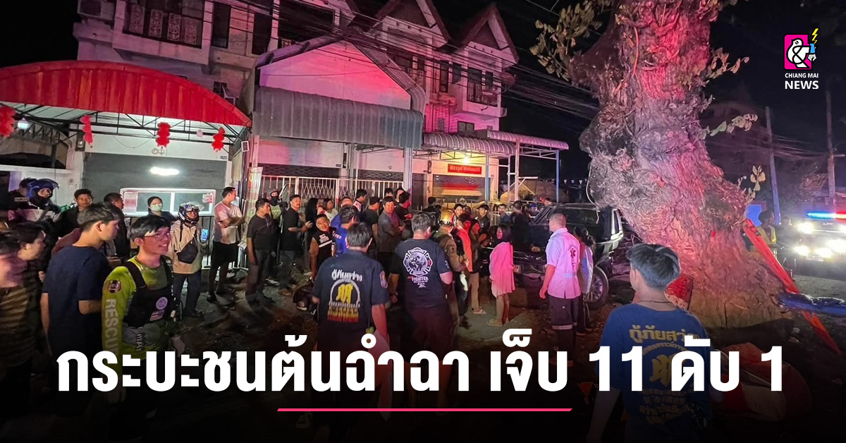 อุบัติเหตุหมู่! หนุ่มขับรถกระบะเสียหลักชนต้นฉำฉา เจ็บ 11 ราย ดับ 1