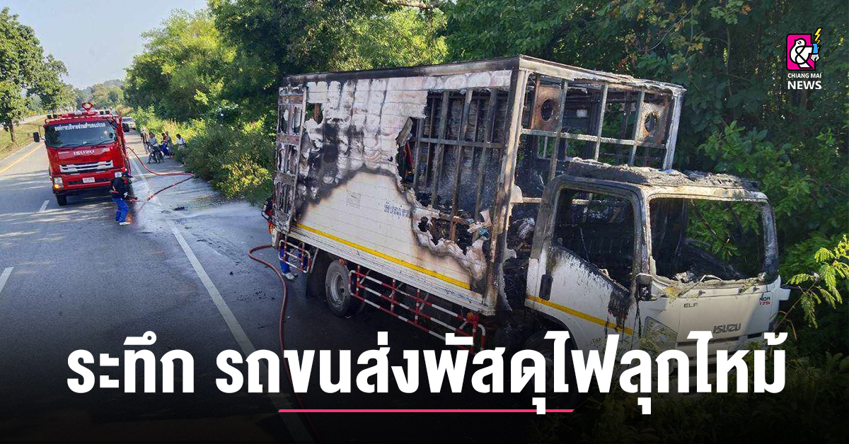 ระทึก รถขนส่งพัสดุไฟลุกไหม้ คนขับวิ่งหนีออกจากรถได้ทัน ก่อนไฟจะไหม้วอด