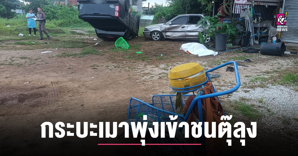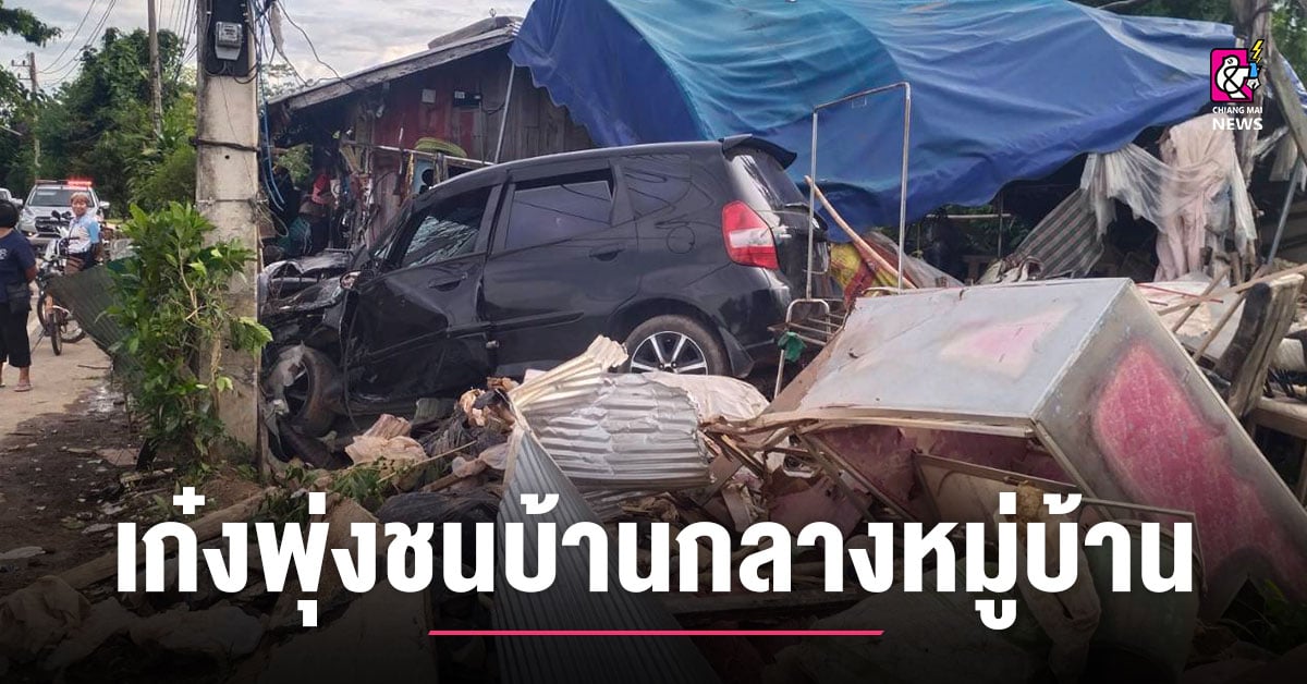 เก๋งพุ่งชนบ้านกลางหมู่บ้าน รอดตายหวุดหวิด