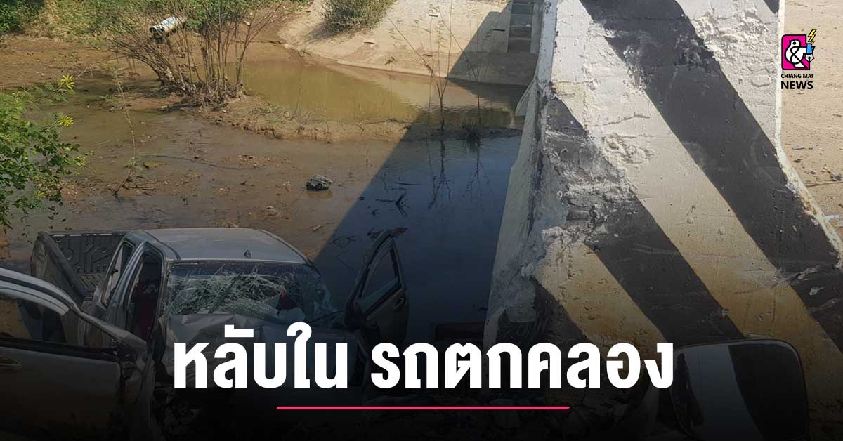 (มีคลิป) เชียงราย กระบะหลับใน รถกระเด็นตกคลอง ได้รับบาดเจ็บ