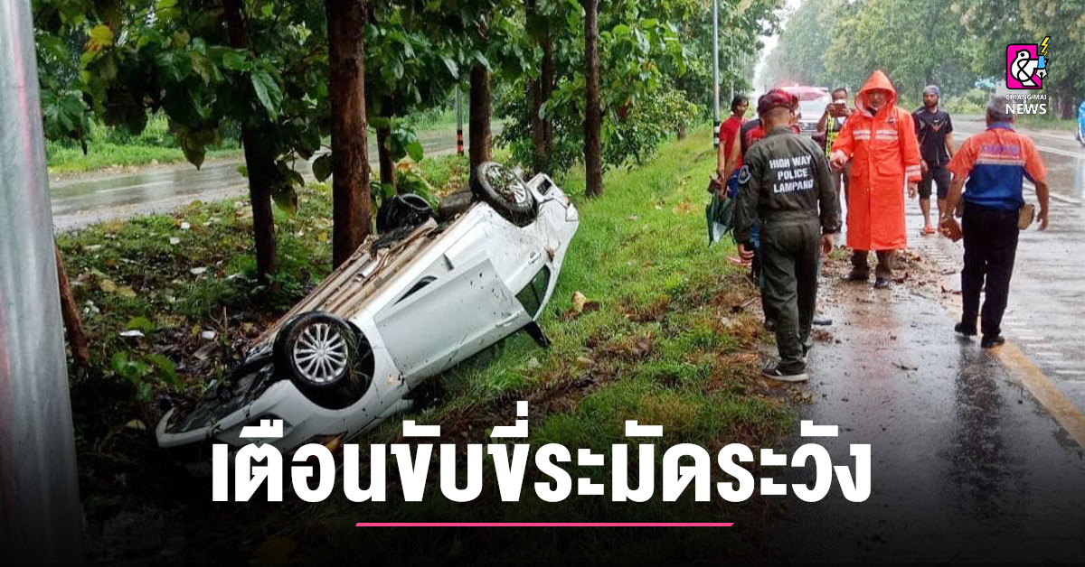 กู้ชีพฯ ทต.ศรีบัวบาน เตือนฝนตกถนนลื่นขับขี่ยานพาหนะให้ระมัดระวัง