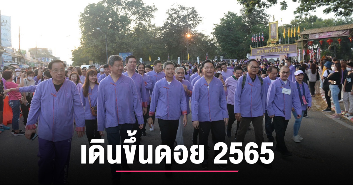 ผู้ว่าฯ เชียงใหม่ พร้อมด้วยอธิการบดี และผู้บริหาร มช. นำทัพศิษย์เก่า – นักศึกษา เดินขึ้นดอย ตั้งแต่หน้า มช. ถึงวัดดอยสุเทพ เพื่อสืบสานประเพณี นมัสการพระบรมธาตุดอยสุเทพ ประจำปี 2565 วันที่ 19 พฤศจิกายน 2565 ในประเพณีรับน้องขึ้นดอย นายนิรัตน์ พงษ์สิทธิถาวร ผู้ว่าราชการจังหวัดเชียงใหม่ พร้อมด้วย ศาสตราจารย์ ดร.นพ.พงษ์รักษ์ ศรีบัณฑิตมงคล อธิการบดีมหาวิทยาลัยเชียงใหม่ ร่วมสืบสานประเพณี นมัสการพระบรมธาตุดอยสุเทพ ประจำ ปี 2565 “ลูกจ๊างขึ้นดอย ปิ๊กฮอยศรัทธา เหมันต์ไหว้สา พระธาตุเจ้าดอยสุเทพ” โดยเดินนำนักศึกษาชั้นปีที่ 1-3 กว่า 18,000 คน ร่วมกันเดินจากมหาวิทยาลัยเชียงใหม่ ขึ้นไปนมัสการพระบรมธาตุดอยสุเทพ ซึ่งเป็นสิ่งศักดิ์สิทธิ์คู่บ้านคู่เมืองเชียงใหม่ และเป็นศูนย์รวมจิตใจของชาวล้านนา รวมระยะทางกว่า 14 กิโลเมตร เพื่อความเป็นสิริมงคล และยังเป็นการสร้างขวัญกำลังใจให้แก่นักศึกษาใหม่ รวมทั้งเป็นการรักษาไว้ซึ่งประเพณีอันดีงาม อันเป็นเอกลักษณ์ของมหาวิทยาลัยเชียงใหม่
