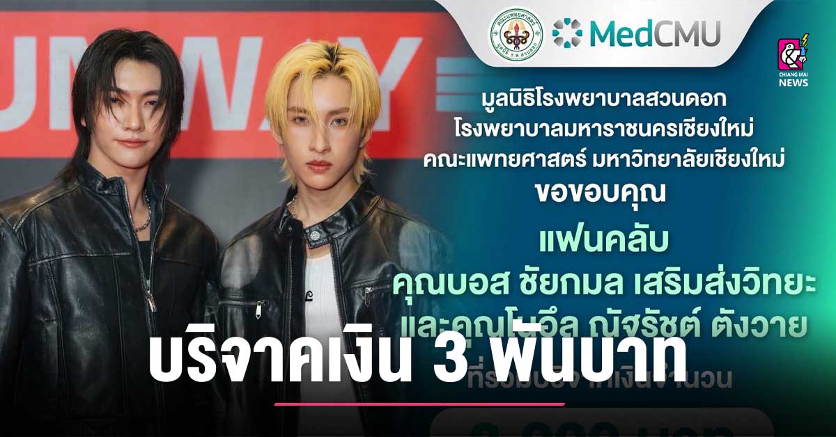 🙏🏻มูลนิธิโรงพยาบาลสวนดอก โรงพยาบาลมหาราชนครเชียงใหม่ คณะแพทยศาสตร์ มหาวิทยาลัยเชียงใหม่ 🤍ขอขอบคุณแฟนคลับ คุณบอส ชัยกมล เสริมส่งวิทยะ และ คุณโนอึล ณัฐรัชต์ ตังวาย ที่ร่วมบริจาคเงินจำนวน 3,000 บาท (สามพันบาทถ้วน) สมทบทุนช่วยเหลือผู้ประสบภัยน้ำท่วม ผ่านโครงการสวนดอกรวมน้ำใจ 💝ร่วมเป็นส่วนหนึ่งของการส่งพลังใจ… จากหัวใจ MedCMU สู่หัวใจของผู้ประสบภัยน้ำท่วม ติดตามผ่านทาง Facebook : https://cmu.to/arm0h ‪#BossNoeul #BoNoh #Bosschaikamon #Noeulnuttarat‬ #น้ำท่วม #น้ำท่วมภาคเหนือ #MedCMU #คณะแพทยศาสตร์มหาวิทยาลัยเชียงใหม่ #แพทย์เชียงใหม่ #แพทย์มช #หมอสวนดอก #โรงพยาบาลสวนดอก #MedCMUในมือคุณ #สื่อสารองค์กรMedCMU