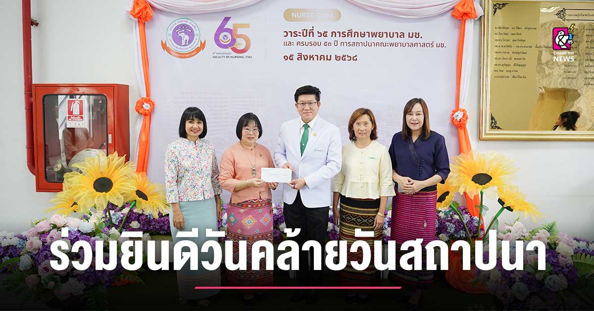 รศ.นพ.นเรนทร์ โชติรสนิรมิต คณบดีคณะแพทยศาสตร์ มช. พร้อมด้วย คุณมะลิวรรณ หินทอง เลขานุการคณะแพทยศาสตร์ มช. และ คุณอรวรรณ เร่งเร็ว หัวหน้างานบริหารทั่วไป ร่วมแสดงความยินดี ในโอกาสวันคล้ายวันสถาปนาคณะพยาบาลศาสตร์ มหาวิทยาลัยเชียงใหม่ ครบรอบ 53 ปี และ วาระครบรอบ 65 ปี การศึกษาพยาบาล มช. โดยมี ผศ.ดร.จันทร์ฉาย โยธาใหญ่ รองคณบดีคณะพยาบาลศาสตร์ มช. และคุณ กมลชนก กาวิล เลขานุการฯ ร่วมให้การต้อนรับ เมื่อวันที่ 15 สิงหาคม 2568 ณ คณะพยาบาลศาสตร์ มช. ภาพ / ข่าว : งานสื่อสารองค์กรคณะแพทยศาสตร์ มหาวิทยาลัยเชียงใหม่ ติดตามผ่านทาง Facebook : https://cmu.to/JOmmH #MedCMU #คณะแพทยศาสตร์มหาวิทยาลัยเชียงใหม่ #แพทย์เชียงใหม่ […]