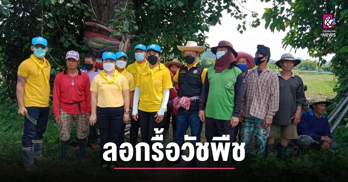 จิตอาสาจาก อบต.บ้านปิน และชาวบ้านกองฝายร่วมกันลอกรื้อวัชพืช