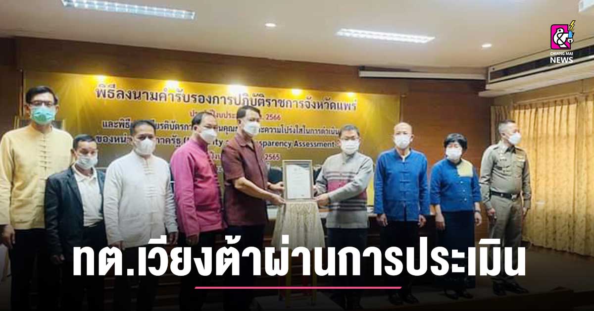 ทต.เวียงต้า รับประกาศเกียรติคุณ ผ่านการประเมินผลคะแนน AA