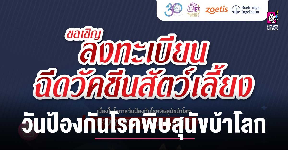 ครอบครัวสัตวแพทย์ มช. ขอเชิญเจ้าของพาสัตว์เลี้ยงแสนรัก ร่วมกิจกรรมเพื่อการดูแลสุขภาพ เนื่องในโอกาสวันป้องกันโรคพิษสุนัขบ้าโลก (World Rabies Day) ณ ศูนย์สุขภาพสัตว์เลี้ยง Pet Wellness Center, CMU ในวันเสาร์ที่ 28 กันยายน 2567 ตั้งแต่เวลา 09.00 – 16.00 น. ฟรี! … วัคซีนป้องกันโรคพิษสุนัขบ้า ,ฟรี! … ถ่ายพยาธิภายใน (ทั้งแบบกินและหยอดหลัง) , ฟรี! … ค่าธรรมเนียมการดูแลสุขภาพ รับจำนวนจำกัดเพียง 250 ตัว เท่านั้น! ลงทะเบียนเพื่อรับสิทธิ์ Click. 👉🏻https://cmu.to/aKf5E หรือติดต่อสอบถามข้อมูลเพิ่มเติม: 053 948114, 053948043 หรือผ่าน Facebook Page: ศูนย์สุขภาพสัตว์เลี้ยง Pet Wellness Center, CMUมาร่วมกันดูแลสุขภาพสัตว์เลี้ยงและชุมชนของเรากันเถอะ!