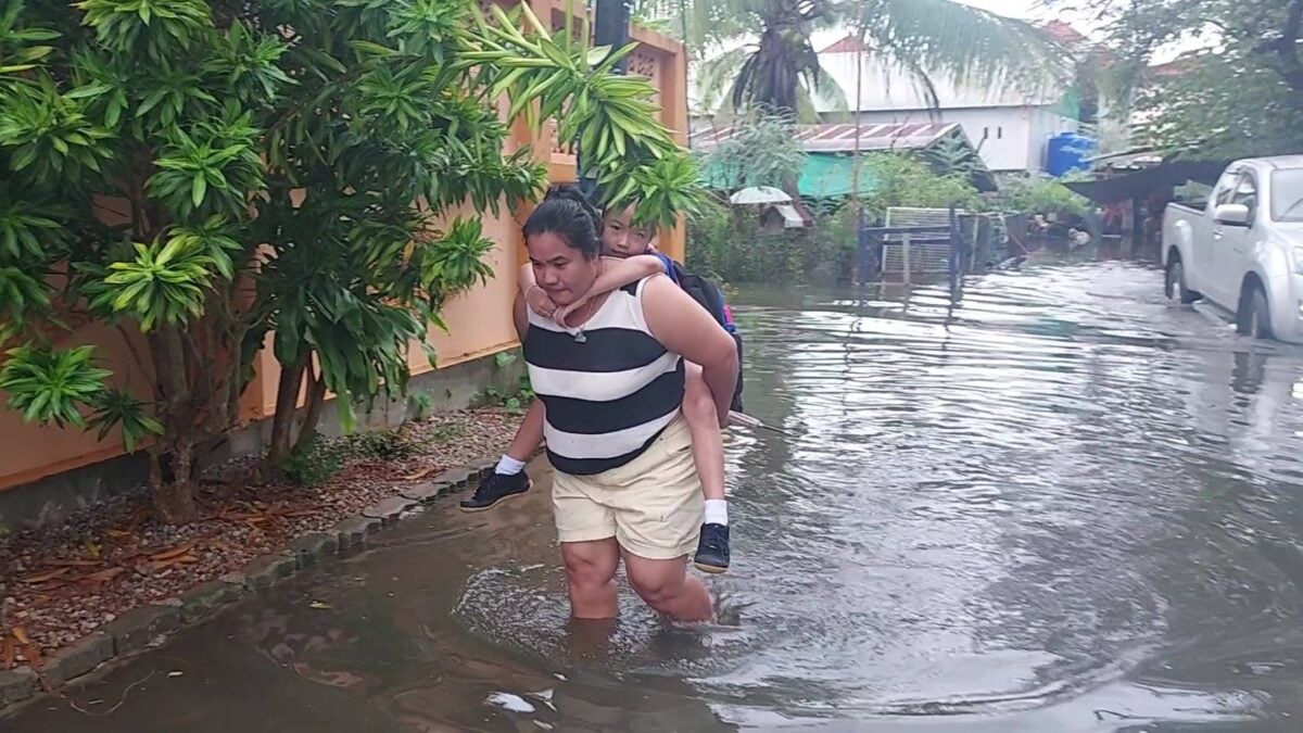 อ.แม่สอด จ.ตาก ฝนตกหนักตลอดทั้งคืน เกิดน้ำท่วมขังถนน และบ้านเรือนประชาชนสูง 70 ซม.ชาวบ้านเดินลุยน้ำส่งลูกเรียนหนังสือด้วยความยากลำบาก เผยสาเหตุนายทุนรายหนึ่งนำดินมาถมปิดเส้นทางน้ำ