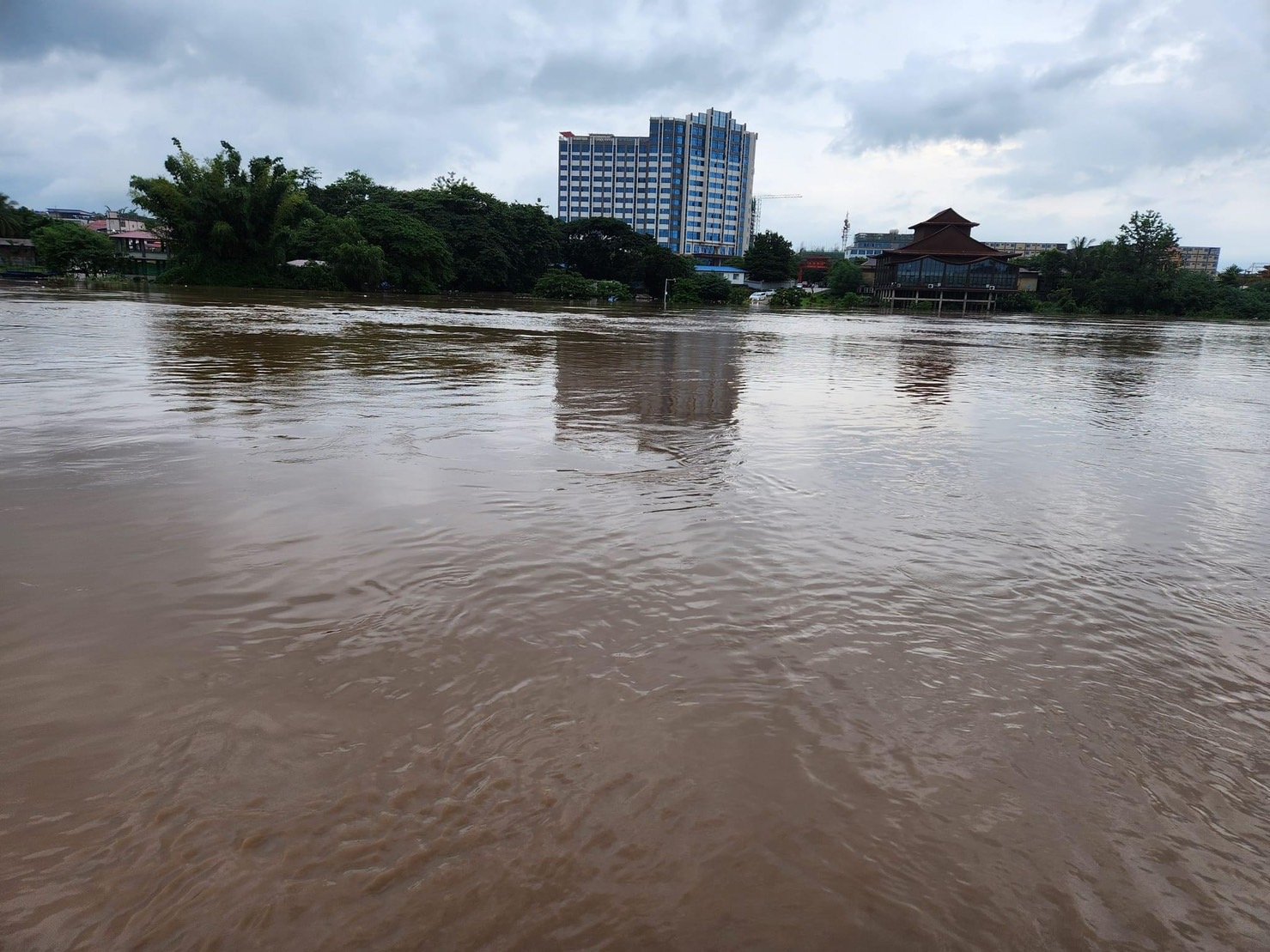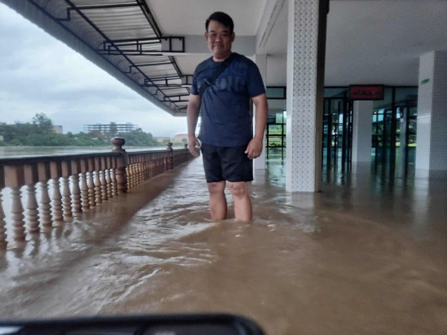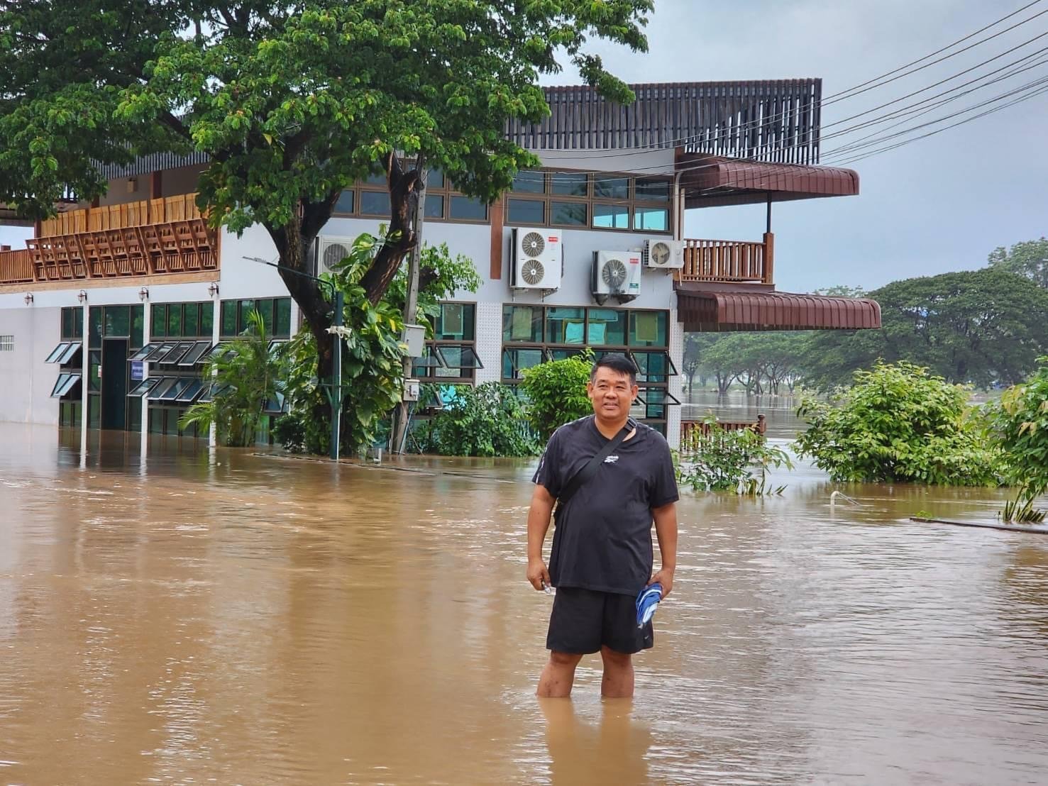 จากขอความที่ระบุในเฟสบุ๊ค “ธงชัย มณีศร” วันที่ 9 ส.ค.66 เขียนว่า “ยังยิ้มได้ จาก 3 ทุ่มถึงเวลานี้ ลดลง 1 ศอกโดยประมาณ เราจะเรียนรู้และจะอยู่ร่วมกับธรรมชาติให้ได้ #สู้สู้นะหมวดธง #ขอขอบคุณทุกๆกำลังใจครับ พร้อมนำภาพน้ำท่วมบ้านริมน้ำ และภาพน้ำท่วมบ้านริมน้ำ และอาคารที่ขายสินค้า และตึกของชาวจีนที่อยู่ตรงข้ามชายแดนไทย ในเขตเมียนมาที่ถูกน้ำท่วมด้วยเช่นกัน